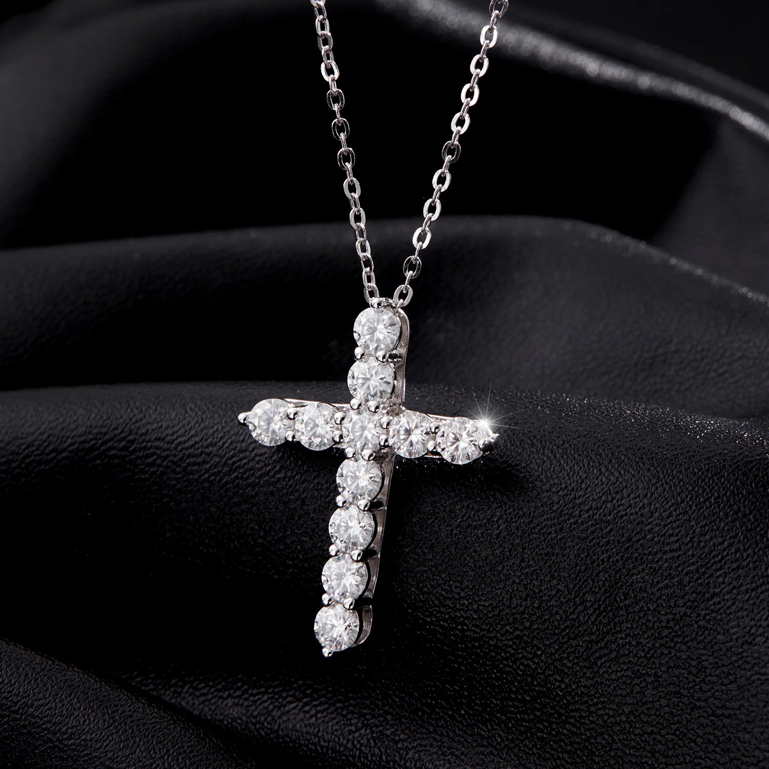 925 Sterling Silver Moissanite Cross Necklace