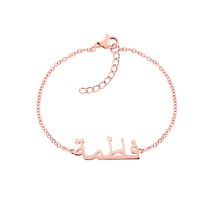 Personlig og fyldt med betydning – Arabisk Navnearmbånd i Rosaguld er en smuk måde at bære din identitet med dig. Uanset om du bruger det alene eller i lag med andre smykker, vil dette armbånd hurtigt blive din favoritaccessory. Den elegante rosaguldfinish tilføjer et strejf af luksus, mens det holdbare rustfri stål sikrer, at armbåndet holder i mange år. Det er den perfekte kombination af stil og følelse – et smykke, der er lige så unikt som dig.