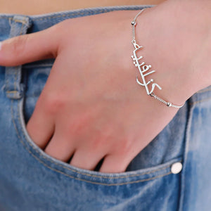 Personlig og fyldt med betydning – Arabisk Navnearmbånd i Sølv er en smuk måde at bære din identitet med dig. Uanset om du bruger det alene eller i lag med andre smykker, vil dette armbånd hurtigt blive din favoritaccessory. Den elegante sølvfinish tilføjer et strejf af luksus, mens det holdbare rustfri stål sikrer, at armbåndet holder i mange år. Det er den perfekte kombination af stil og følelse – et smykke, der er lige så unikt som dig.