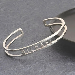 Skab et markant statement med Cuff Navnearmbåndet i Rosaguld, personligt indgraveret med dit navn eller yndlingsudtryk. Dette Rosaguld Cuff Armbånd er fremstillet i guldbelagt rustfrit stål for langvarig glans og komfort. Det justerbare design passer til ethvert håndled og giver et skræddersyet look uden at gå på kompromis med komforten. Brug det alene eller sammen med andre armbånd for et iøjnefaldende udtryk.