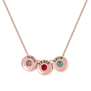 Engraved Beads Necklace with Names & Birthstones Rose Gold