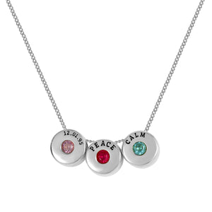 Engraved Beads Necklace with Names & Birthstones Silver