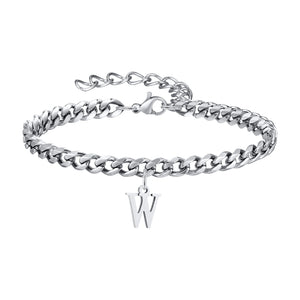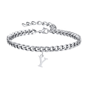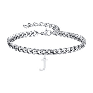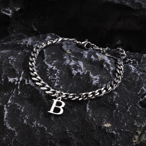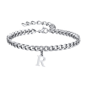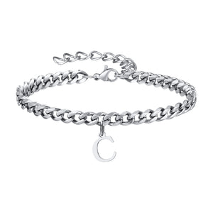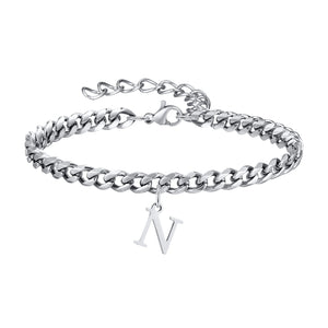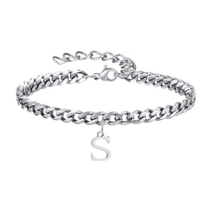 Klassisk Armbånd med Bogstav og Cuban Lænke i Sølv
