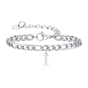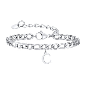 Omslut dit håndled med det kølige skær fra Classic Initial Armbånd Figaro i Sølv, hvor et slankt initialvedhæng møder en solid Figaro-kæde. Dette Sølvarmbånd føles både markant og let, fremstillet af 316L rustfrit stål, der bevarer sin glans dag efter dag. Det justerbare design sikrer en perfekt pasform, mens de polerede led giver et strejf af luksus. Brug det alene eller sammen med dine favoritter for et personligt udtryk.
