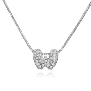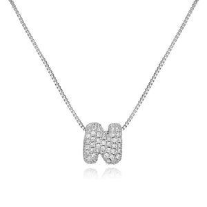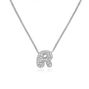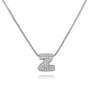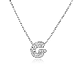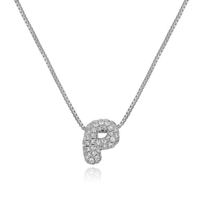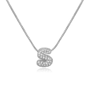 Mini Boble Halskæde med Glimtende Bogstav i Sølv