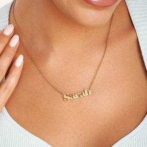 Timeless style meets personal meaning in this Retro Name Necklace with Birthstone. The bold, vintage-inspired name pendant is paired with a sparkling birthstone of your choice, making it as unique as you are. Available in gold, silver, or rose gold, this birthstone name necklace adds a touch of elegance to both casual and special occasions.