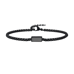 A bold and personal accessory, the Engraved Box Chain Bracelet in Black combines modern style with a personal touch. Featuring a geometric square tube pendant, this bracelet allows you to engrave up to 8 characters per side on all four sides, making it a unique way to showcase names, initials, or special words.