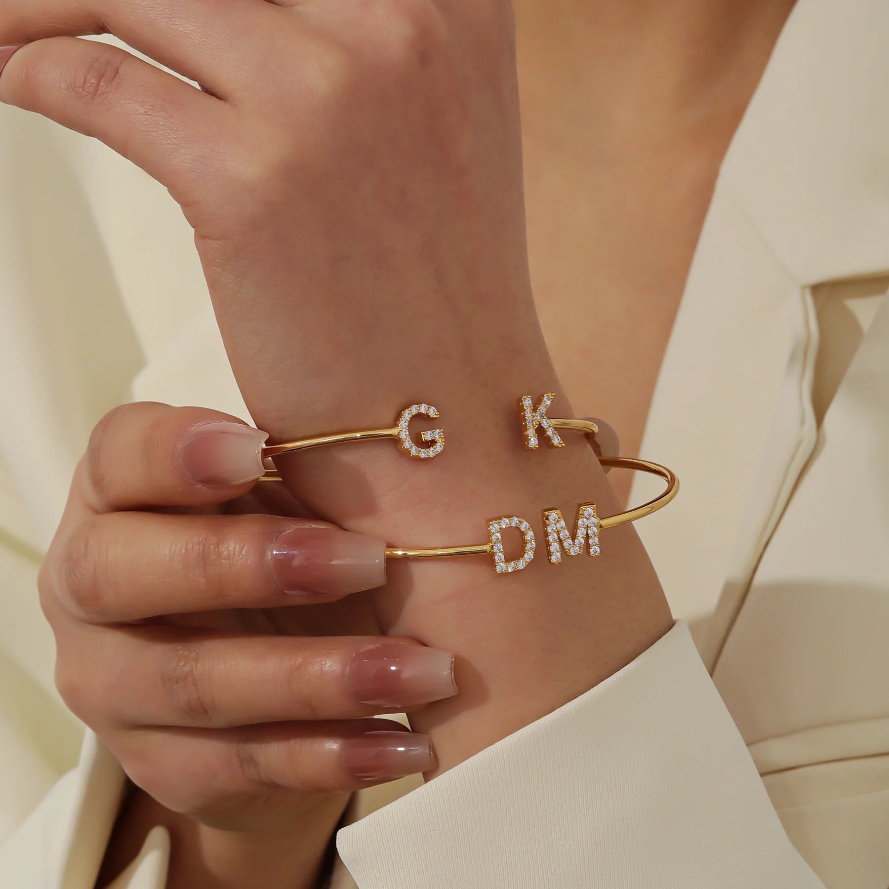 Dainty Double Initial Rose Gold Cuff Bracelet
