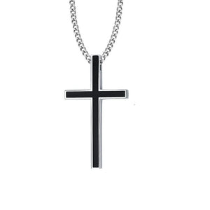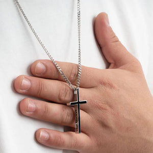 Engraved Cross Pendant Necklace Silver Black