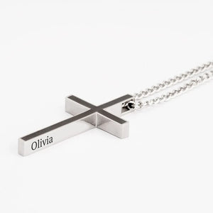 A meaningful and stylish accessory, the Engraved Cross Pendant Necklace is a perfect way to showcase your faith while adding a personal touch. Crafted from durable stainless steel, this necklace features a sleek two-tone design with a silver base and a black front, giving it a bold and modern look. The cross pendant can be custom engraved on both sides with a name or meaningful word (up to 15 characters per side), making it a unique and thoughtful gift for a loved one. Attached to a classic link chain, it is designed for everyday wear, offering both style and sentiment in one piece. Perfect for both women and men who appreciate faith-inspired jewelry or just love streetwear, this necklace is suitable for any occasion,