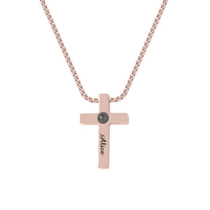 Make your special occasion unforgettable with this Engraved Photo Cross Necklace in Rose Gold, featuring a unique photo projection and the option to personalize it with an engraving. The cross pendant allows you to add a custom photo that can be projected, creating a sentimental keepsake. You can also engrave a meaningful text—whether it’s a name, special date, or message—making this necklace truly one-of-a-kind.