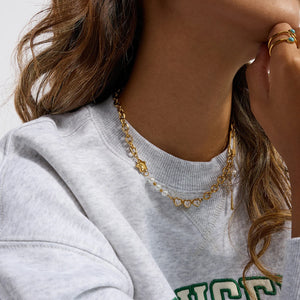 Gold Charm Necklace with Pearls & Pendants