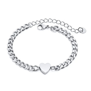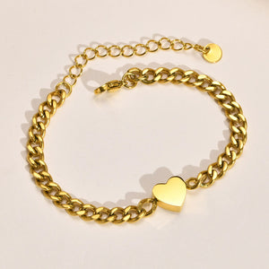 The Heart Chain Couple Bracelet Gold features a polished heart charm on a sleek Gold Chain Bracelet, perfect for matching with someone special. Made from durable 316L stainless steel with an 18K gold finish, it offers everyday shine and comfort. The adjustable 16–21 cm length and lobster clasp ensure a secure, custom fit. Wear this Gold Bracelet solo or share it as a stylish Couple Bracelet.
