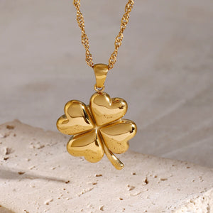 Lucky Clover Heart Pendant Necklace 18K Gold