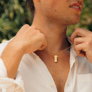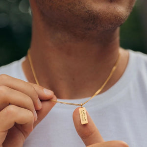 A bold and meaningful accessory, the Minimalist Engraved Bar Pendant Necklace in Rose Gold is the perfect way to showcase your individuality. Fully customizable, this necklace allows you to engrave names, initials, dates, or meaningful words, making it a one-of-a-kind piece that reflects your personal style. Crafted from high-quality stainless steel, this necklace is built for durability, with a tarnish-resistant finish that maintains its shine over time. The hypoallergenic material ensures comfort for all-day wear, making it safe for sensitive skin. Featuring a sleek and modern bar pendant, this necklace pairs effortlessly with any outfit, whether casual or formal. Designed exclusively for men, its timeless appeal makes it a standout addition to any jewelry collection.